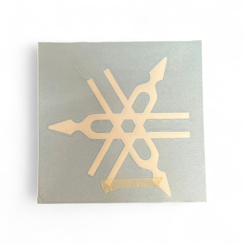 Adesivo bianco in vinile con simbolo Yamaha a tre diapason incrociati. Non originale. Ideale per personalizzare carene, serbatoio o accessori moto.