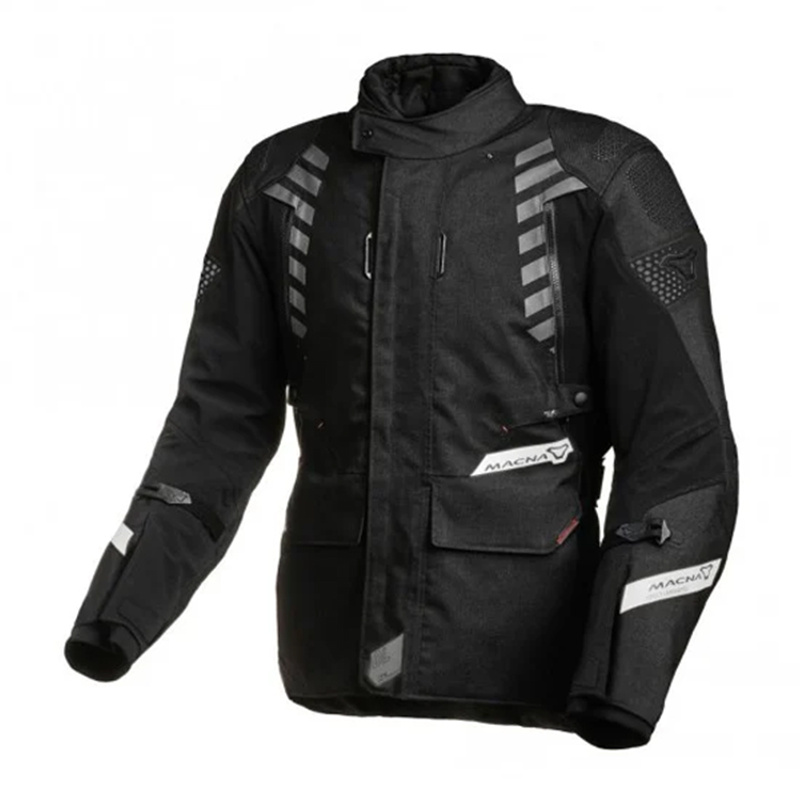 GIACCA MOTO Macna Ultimax Nera . GIACCA MOTO versatile realizzata in tessuto Durylon altamente resistente e durevole con inserti in tessuto Soft Flex. I punti salienti includono la membrana Raintex impermeabile e traspirante per proteggere in caso di pioggia e una fodera termica rimovibile insieme al sistema di ventilazione, che gli consentono di adattarsi facilmente alle varie condizioni climatiche di fROSSOdo o caldo. Incorpora protezioni rimovibili di livello 2 su spalle e gomiti e pROSSOisposizione per montare un paraschiena (non incluso).