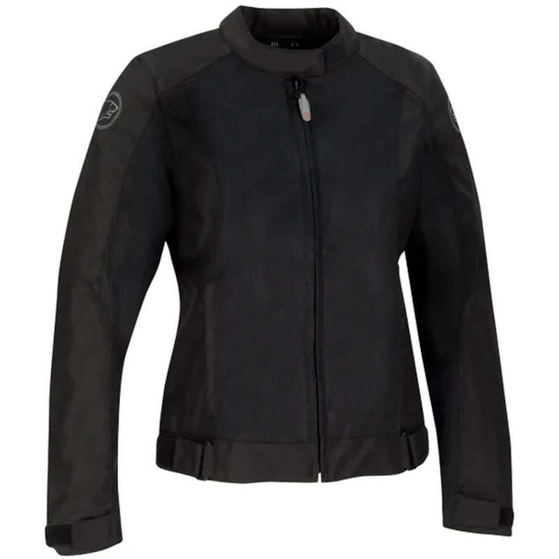 Giacca estiva modello femminile realizzata in tessuto di poliestere con grandi pannelli in mesh per una ventilazione eccellente. Dispone di protezioni omologate in spalle e gomiti.