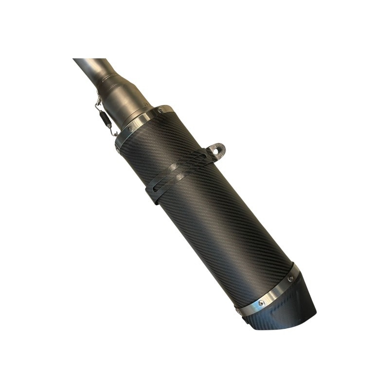 – Silenziatore in carbonio con fascetta e fondello in acciaio inox
